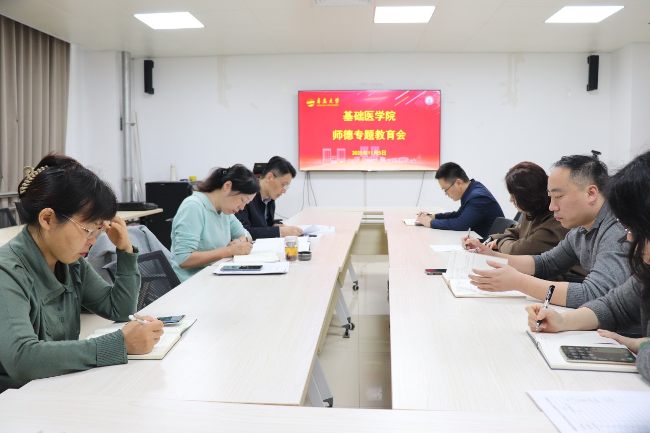 为深入学习贯彻习近平总书记关于教育的重要论述及全国教育大会精神,全面落实中共中央、国务院《关于弘扬教育家精神加强新时代高素质专业化教师队伍建设的意见》等文件要求,11月5日下午,青岛大学基础医学院领导班子及各党支部书记齐聚一堂,召开师德师风专题工作会议,旨在通过系统学习和深入讨论,进一步推进学院师德师风建设,筑牢教育高地。