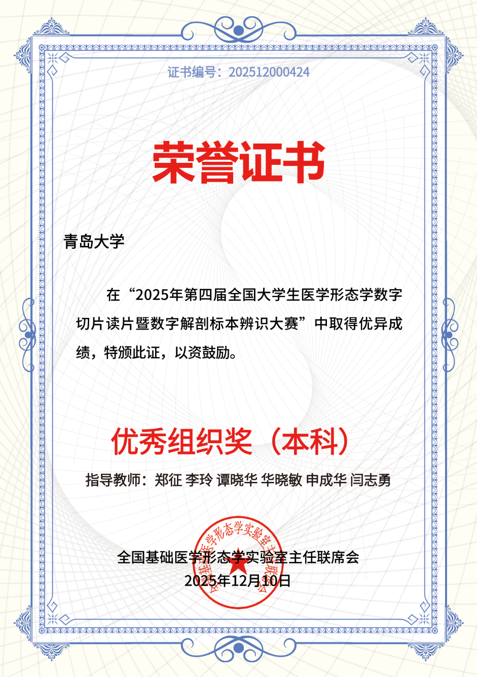 12月7日,由全国基础医学形态学实验室主任联席会与山东数字人科技股份有限公司联合举办的“第四届高等医学院校大学生数字形态学读片和数字解剖标本辨识技能大赛”线上决赛顺利圆满结束。青岛大学基础医学院人体显微结构学实验室承担了青岛大学赛点的承办工作。在大赛组织过程中,得到了基础医学院国家级基础医学实验教学中心(青岛大学)以及组织胚胎学、病理学、解剖学、寄生虫学、病原生物学等多个课程组的鼎力支持。